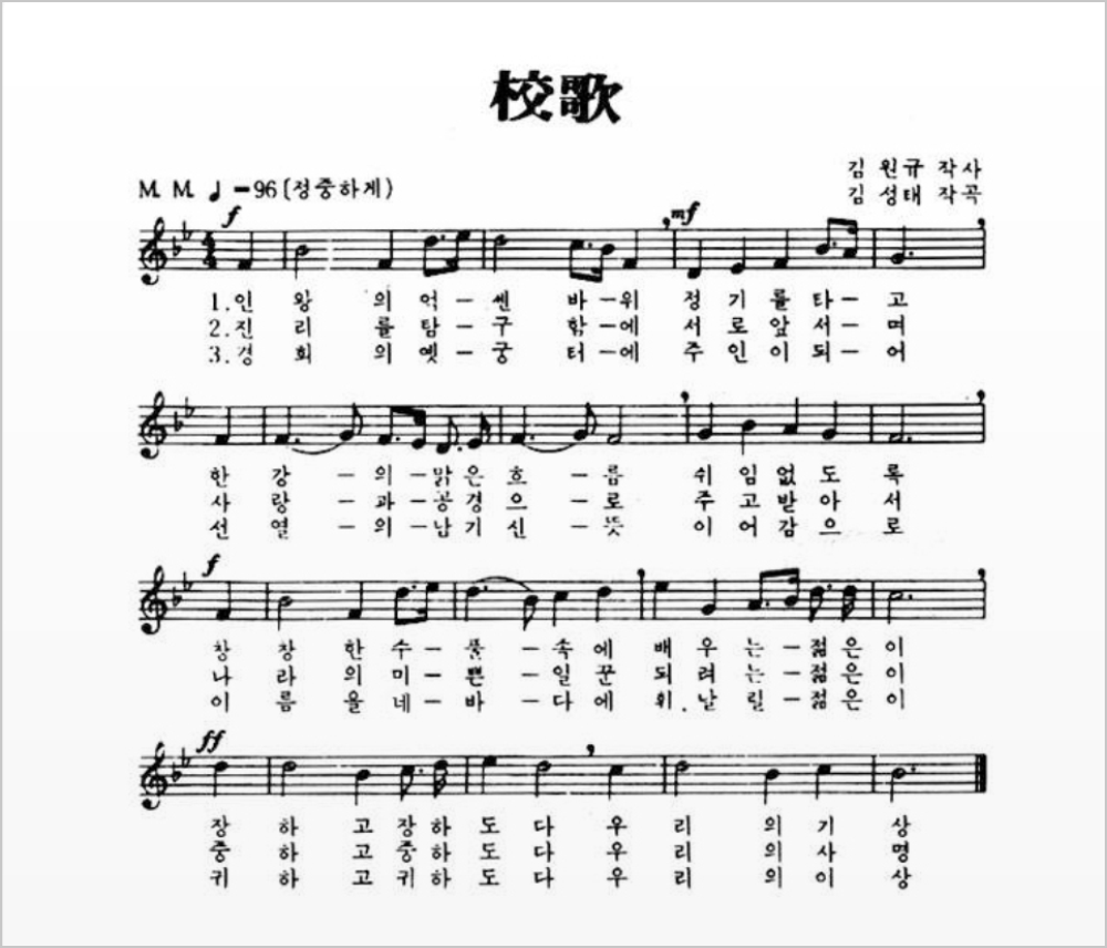 김원규 작사, 김성태 작곡의 서울고등학교 교가입니다.