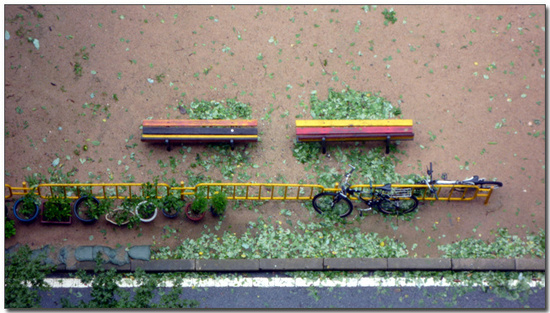 태풍이 지나간 놀이터 벤치