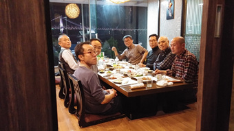 ....>>>>> 시계 반대 방향으로 박영진, 김민환, 김창락, 윤수철, 조금 보이는 소생 홍석현 정홍상, 지부회장겸 서울고총동문부산지부 최상현 회장, 이동섭 >>>>>