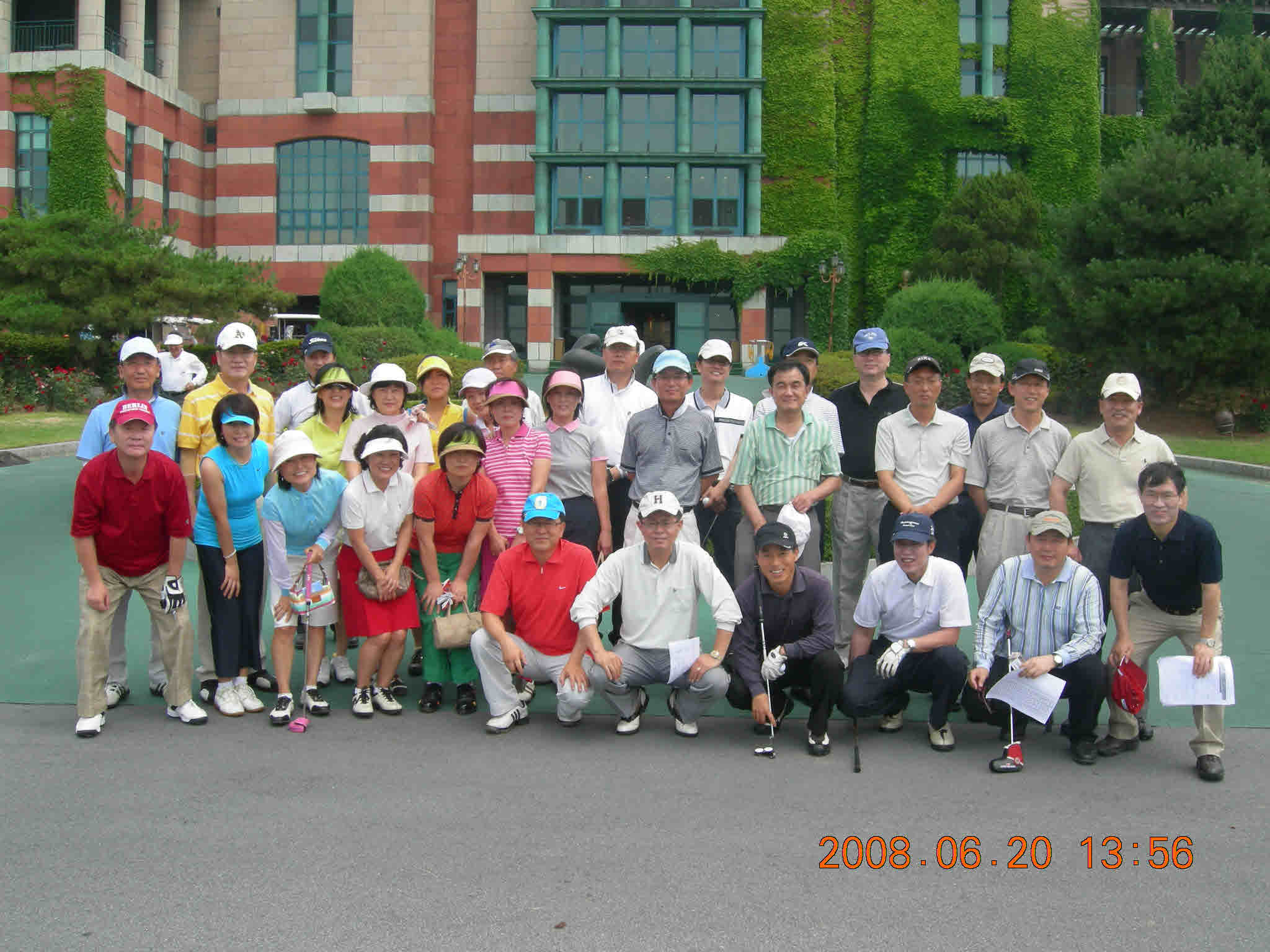 대회에 앞서서 한방씩 찍었어요-아줌마라고 부르니 모두 잔뜩 화나거나 토라져 사진사를 놀리면서 뒷모습만 보여주길래 잠시 멈뭇거리다 여보(세요) 아니 언니 하고 부르니까 대환영을 받음-그러니까 골프장에선 여보하고 집에서는 언니 하고 부르는 것이 부부금슬에 좋다는 속설이 입증됨