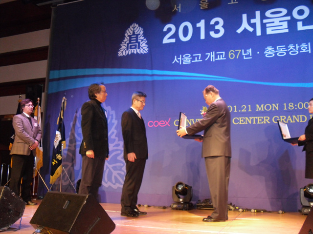 2013년1월 21일 서울고총동창회 신년하례식에서 동문회장님으로 부터 우수동기회상 수상 사진
